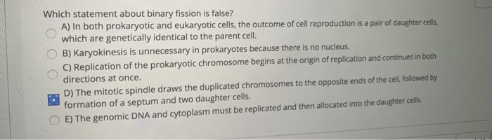Solved Which Statement About Binary Fission Is False A In Chegg Com
